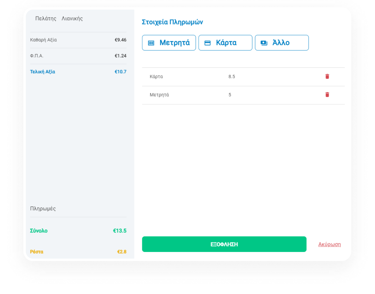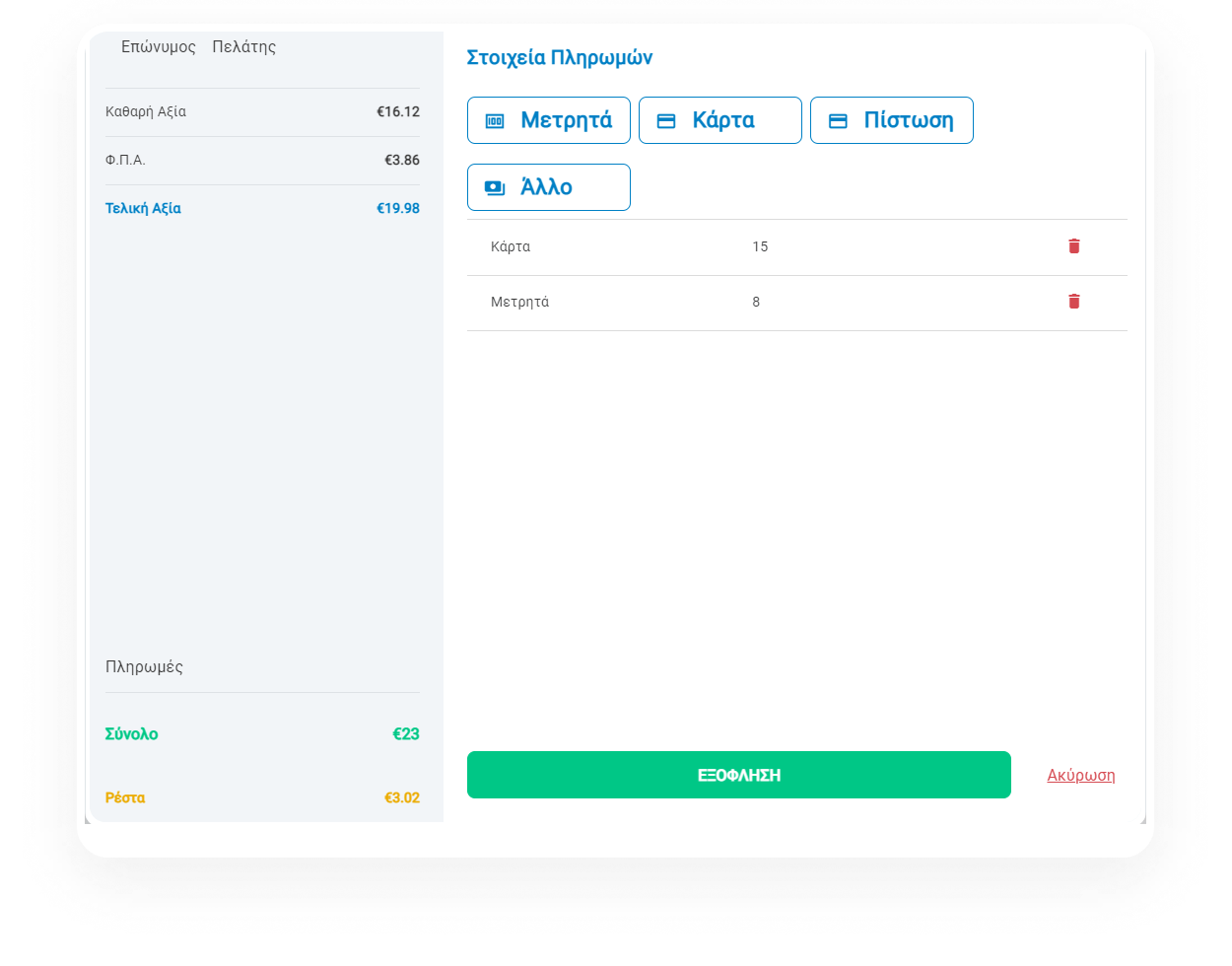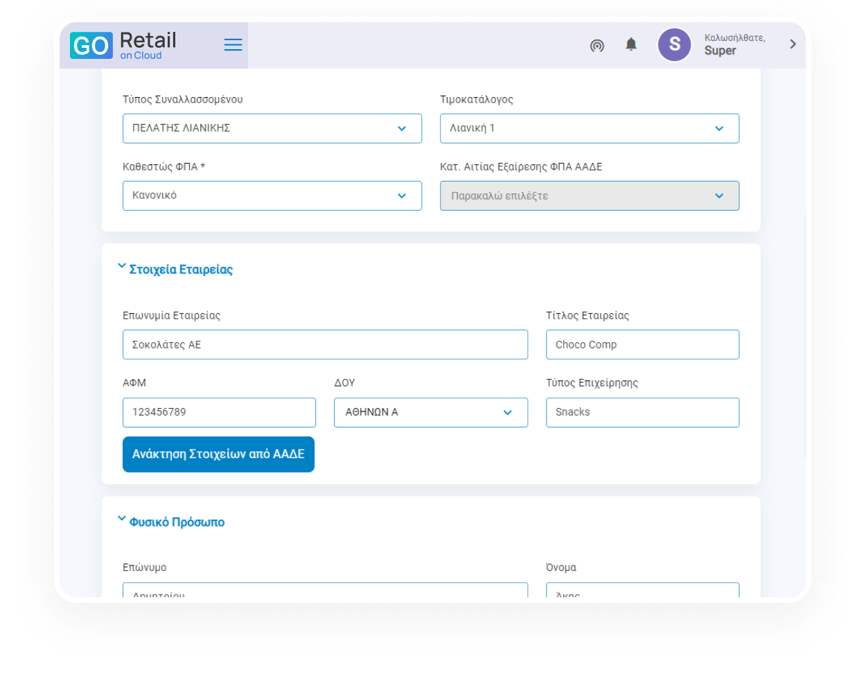 Connection with the Certified E-Invoicing Provider (SoftOne EINVOICING). GO Retail on Cloud works with electronic marking (SoftOne EINVOICING) and the documents’ data are sent directly to IAPR (myDATA).